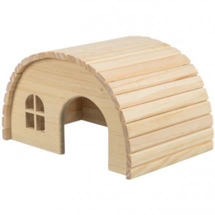 Cette jolie maison en pin naturel à toit rond permettra d'abriter 2 voir 3 chinchillas. Dimensions : longeur 28cm x largeur 20 x hauteur 17cm...